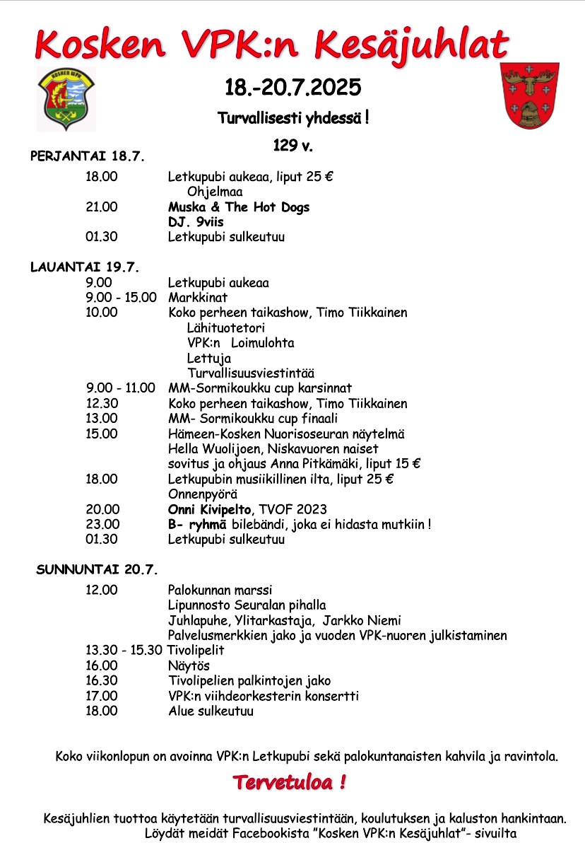 Vuoden 2025 kesäjuhlat 18-20.7.2025.